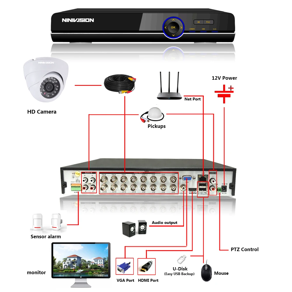 16ch CCTV System 720P AHD Camera 16PCs Security Camera System AHD DVR 1080P HDMI CCTV DVR Recorder