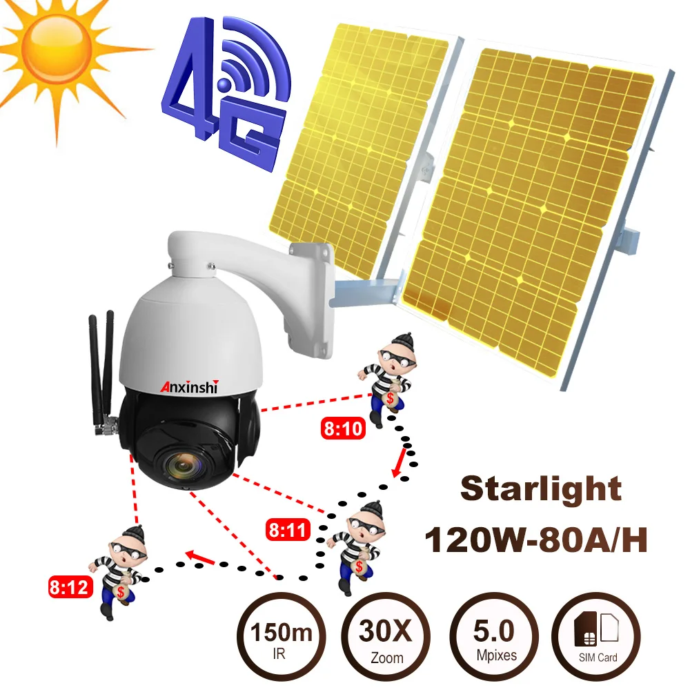 Dual Solar panel for Auto tracking 5MP HD WiFi 4G IP camera SIM card TF card slot supply 80A batter
