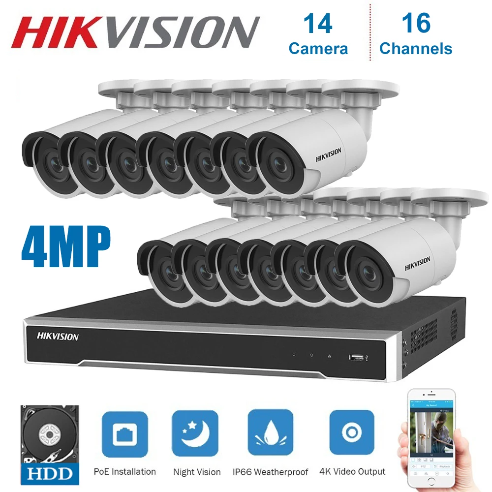 4K Network Hikvision 16Channels POE NVR Video Surveillance with 14pcs IP Camera Security Night Visi