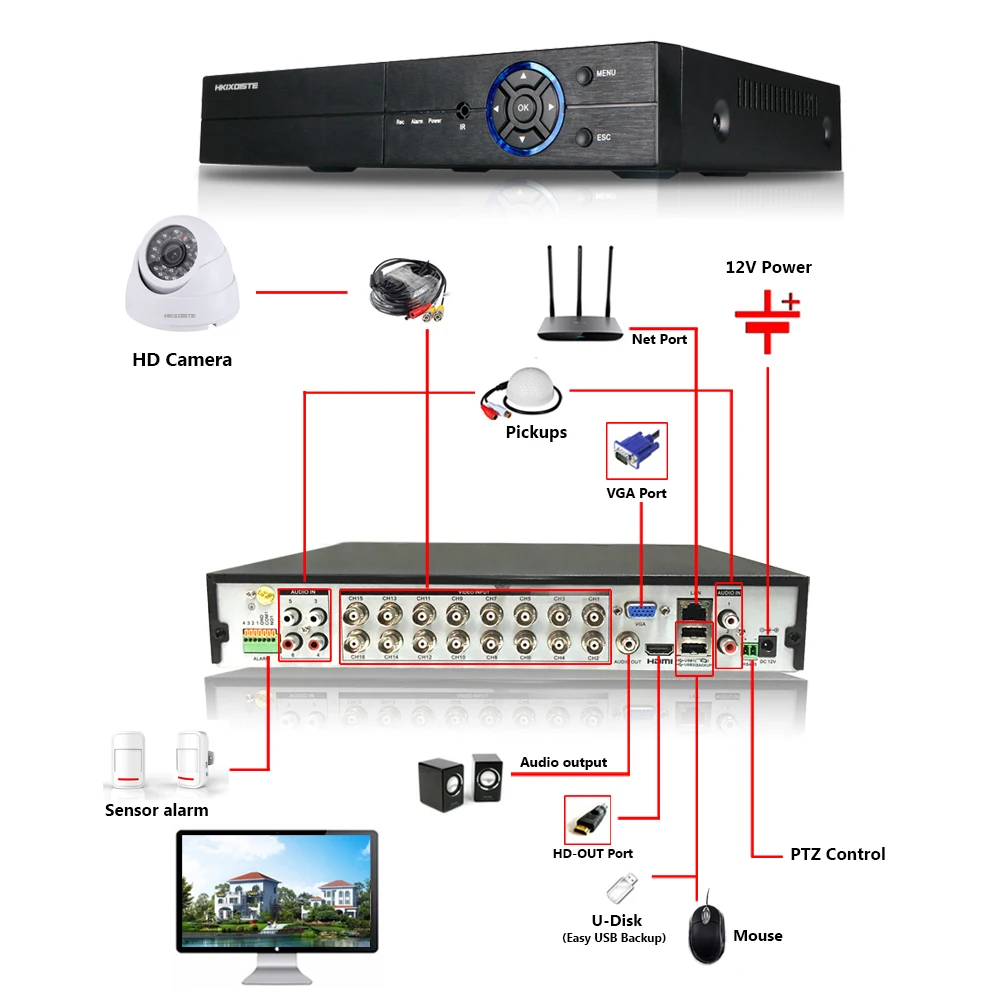 5mp CCTV Surveillance Kit 4mp Dome Security Camera System 16 ch DVR 1080P 2K Video Output Kit CCTV