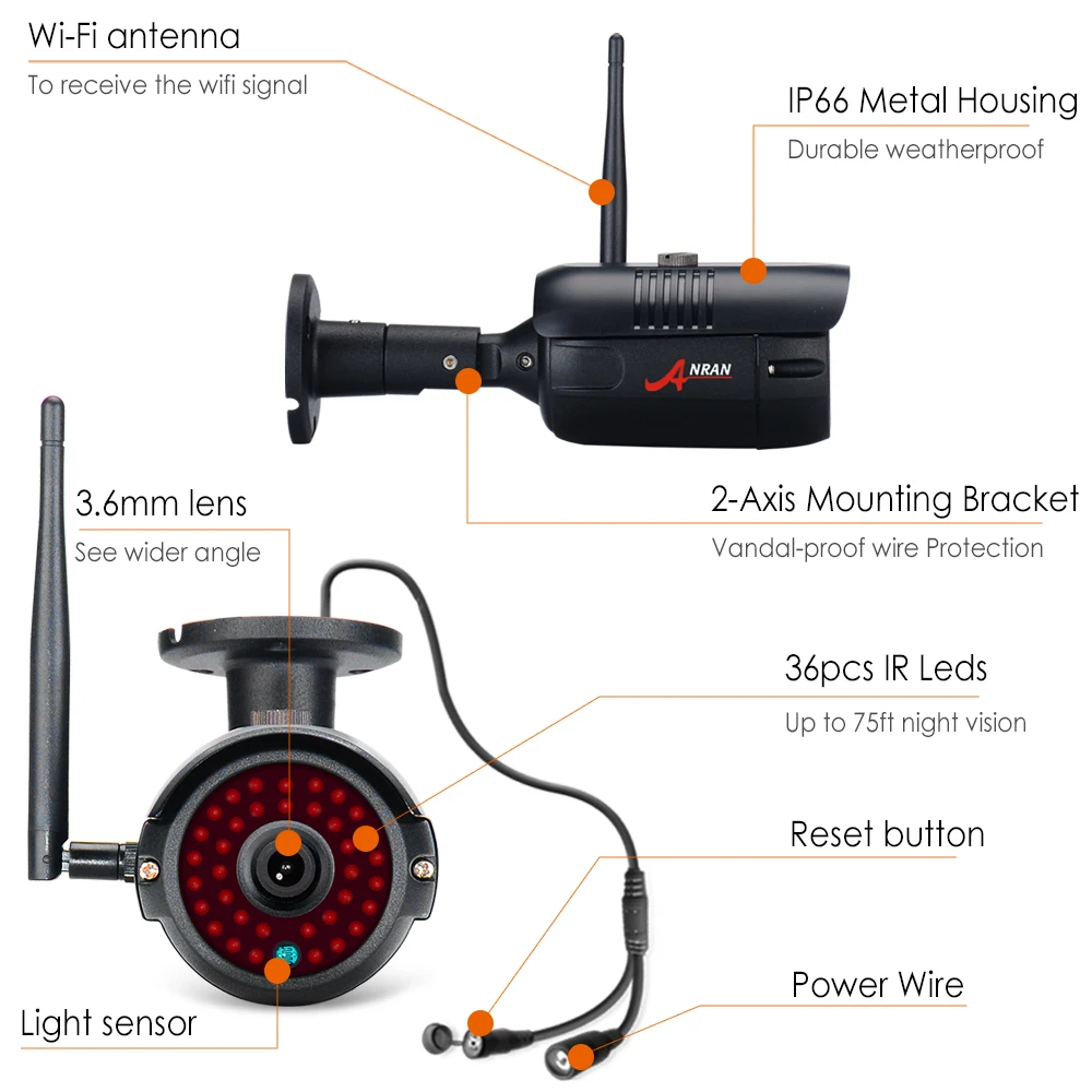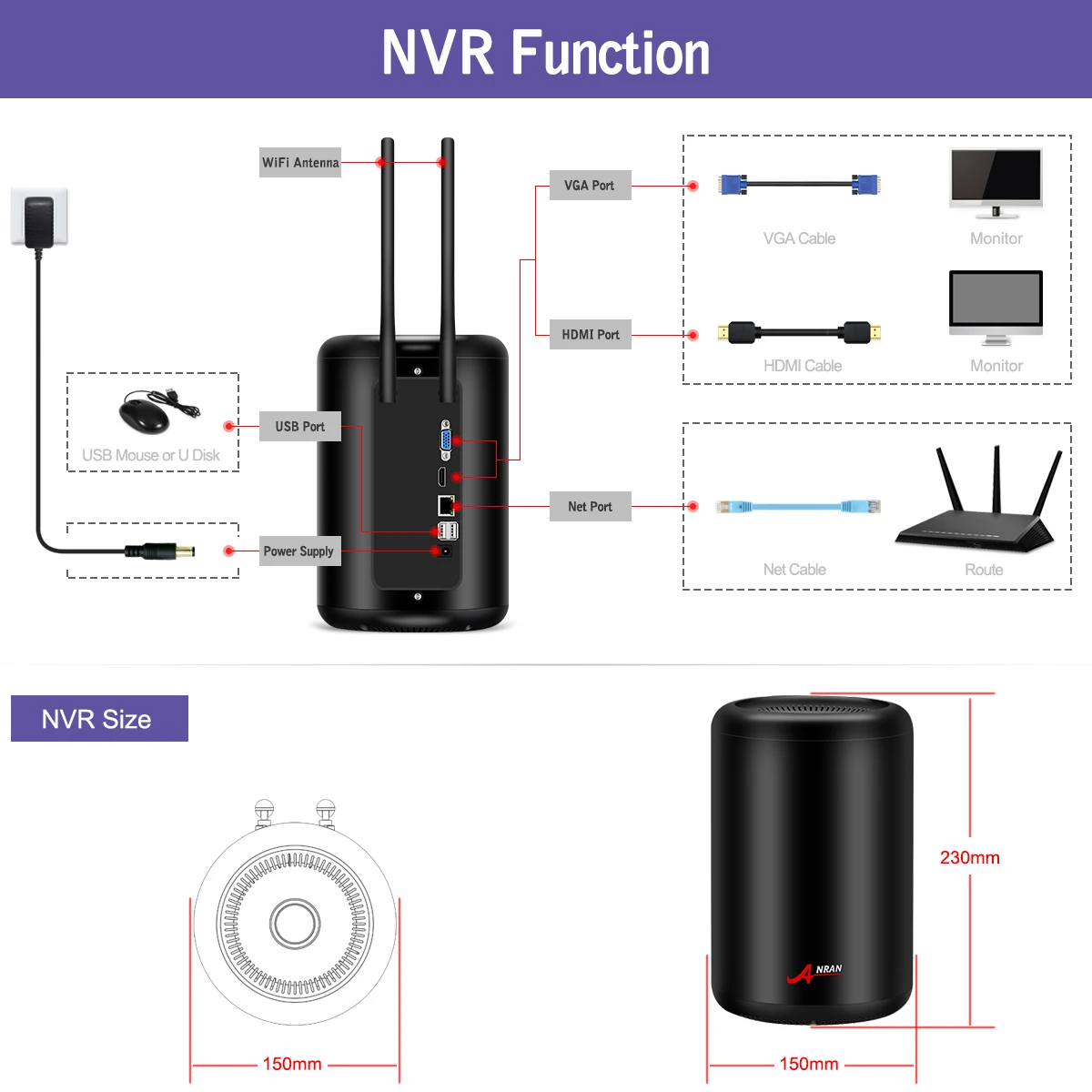 ANRAN 1080P HD 4CH Wifi IP Cameras System Outdoor Waterproof Night Vision Surveillance System Cylin