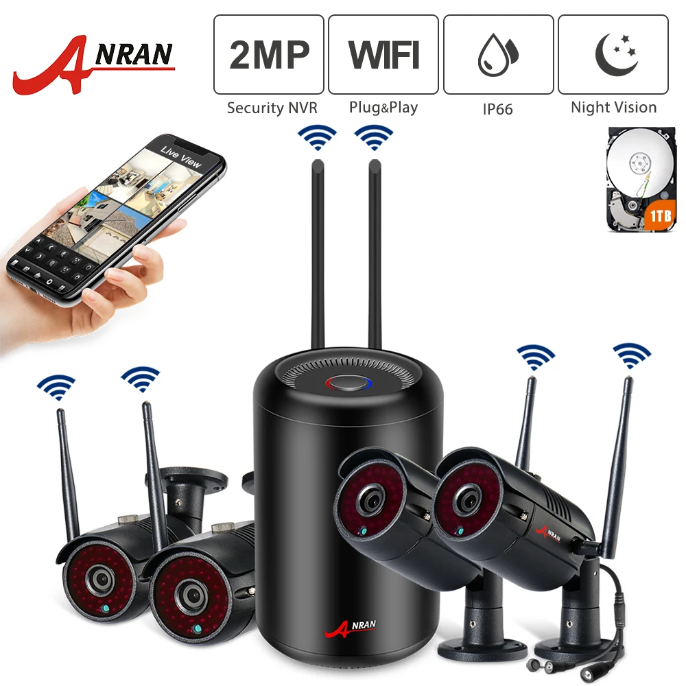 ORIGINAL ANRAN 1080P HD 4CH Wifi IP Cameras System Outdoor Waterproof Night Vision Surveillance System Cylin