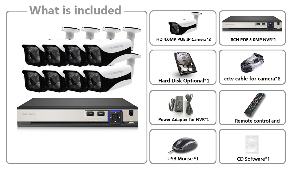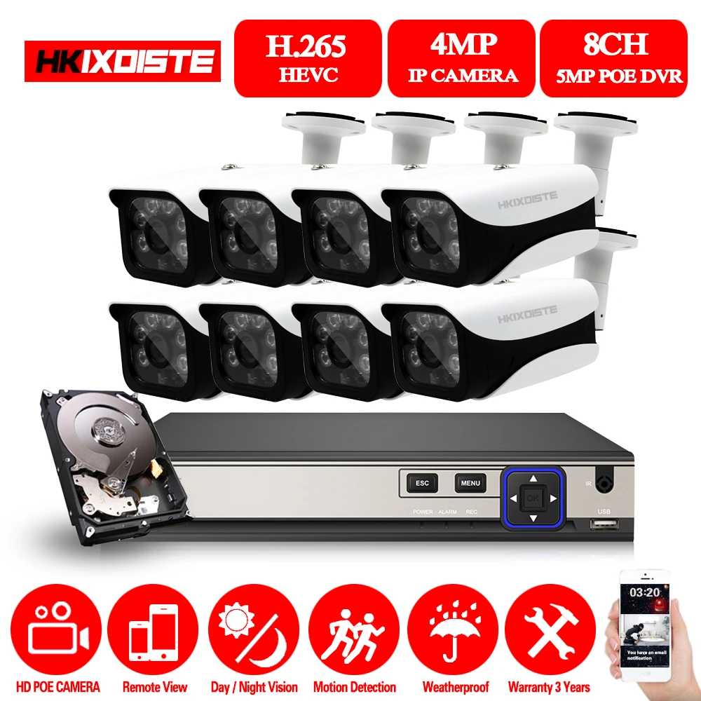 HIGH QUALITY HKIXDISTE 8CH POE CCTV Camera System 5.0MP NVR Kit 4MP Bullet IP Camera POE Outdoor Security Video