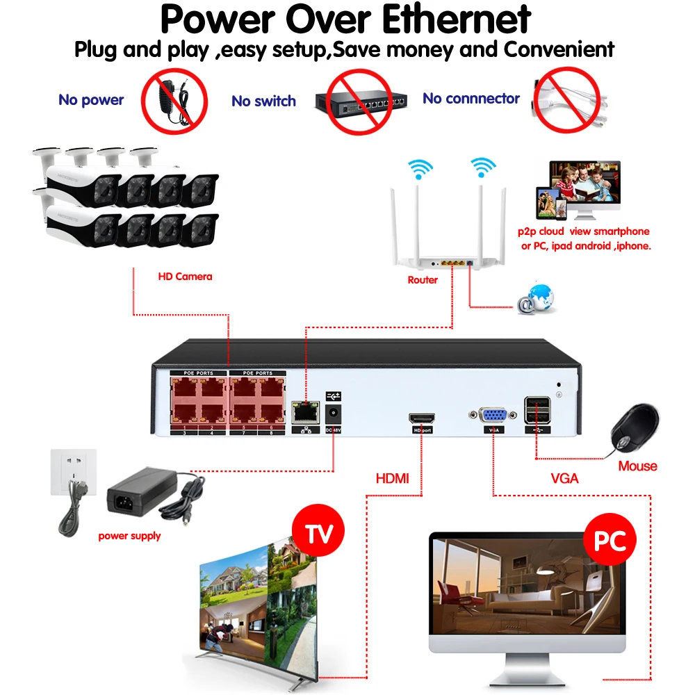 HKIXDISTE 8CH POE CCTV Camera System 5.0MP NVR Kit 4MP Bullet IP Camera POE Outdoor Security Video