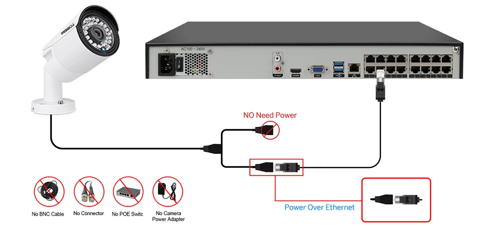 MISECU H.265 16CH 2MP 5MP POE NVR CCTV Security System 16PCS IR Outdoor 1080P Audio Record P2P Outd
