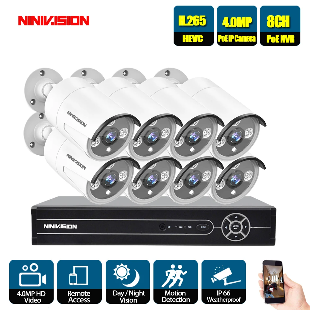 Best 8Ch HD H.265 4MP POE Security Camera NVR CCTV System With 2592*1520 IP Camera Outdoor Night Vision