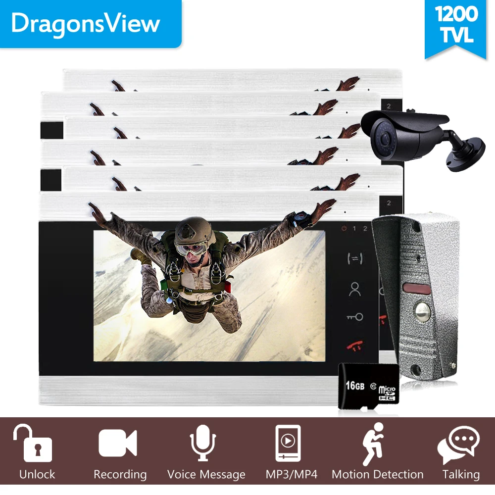 BEST QUALITY Dragonsview 7 Inch Video Intercom Motion Ring Doorbell with Camera 6 Monitors 1 doorbell Panel and