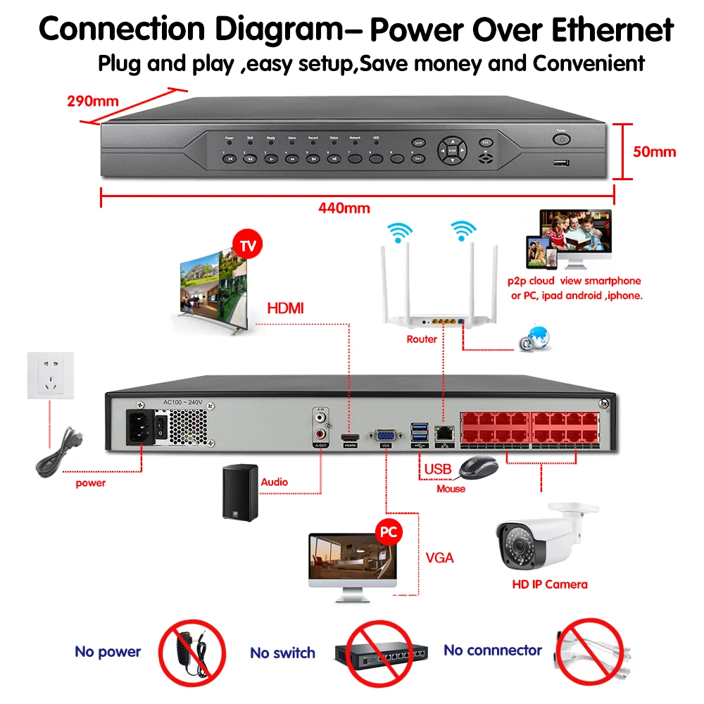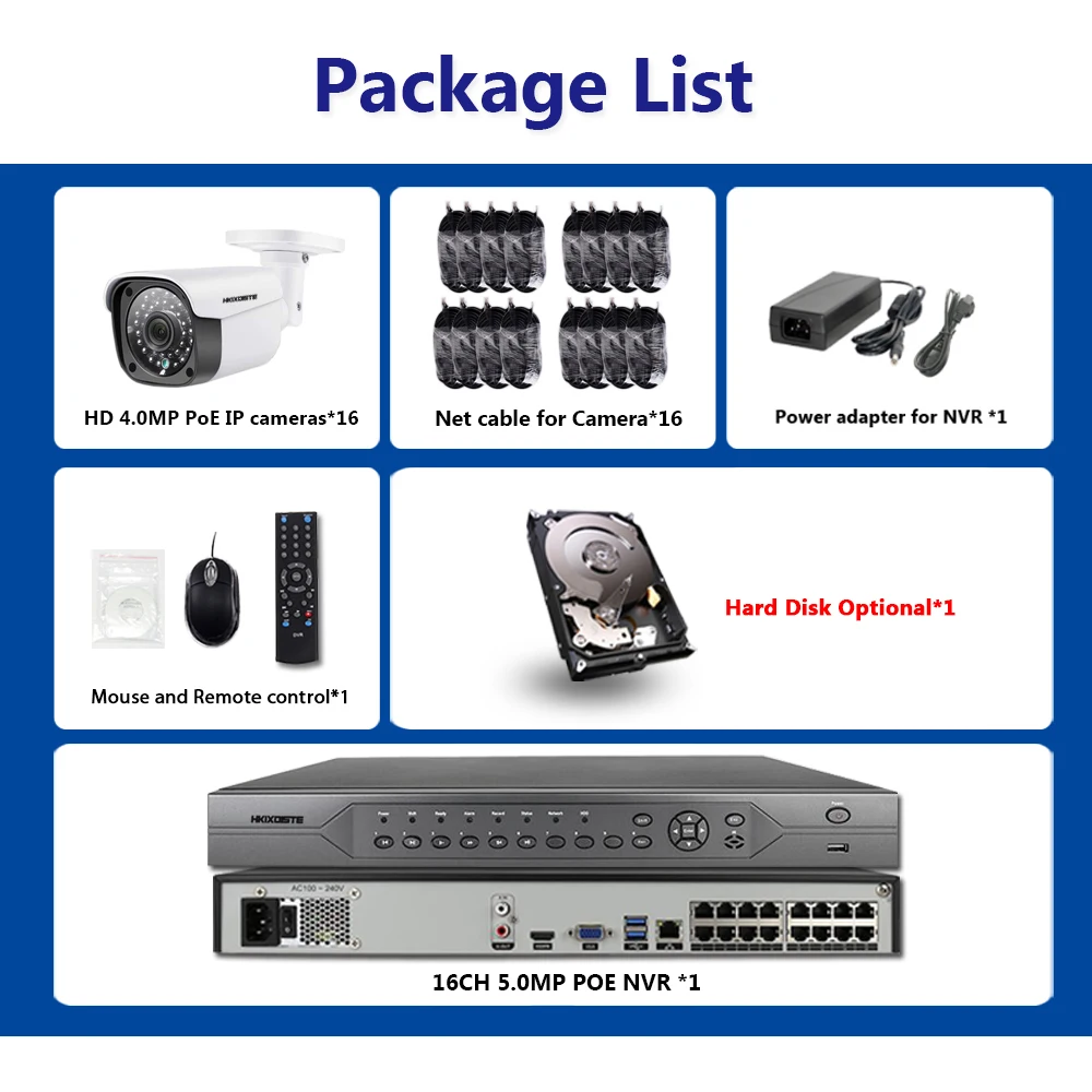H.265 8CH 4K 16CH 5MP CCTV System POE NVR Kit 16 Outdoor Waterproof 4.0MP Security IP Camera P2P Vi