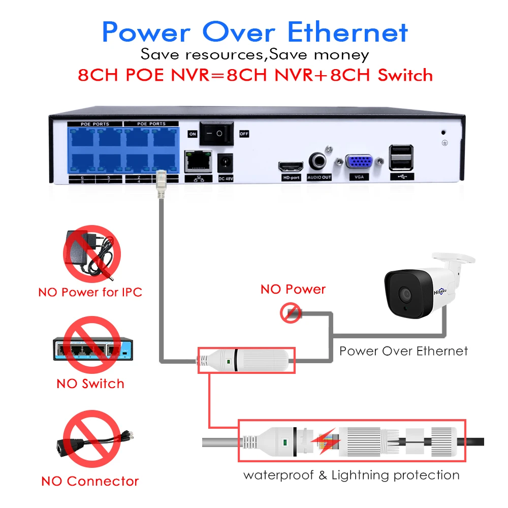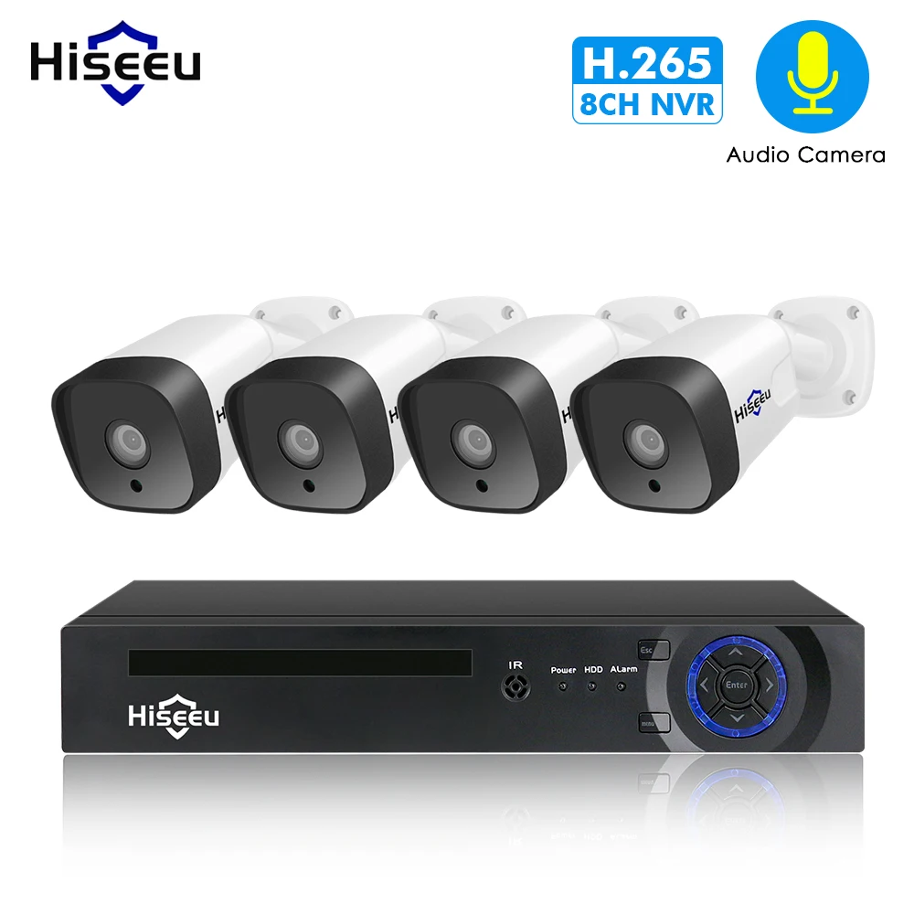 Hiseeu Audio 1080P POE NVR Kit 8CH H.265 CCTV Camera System Outdoor 2MP Audio IP Camera Security Ca