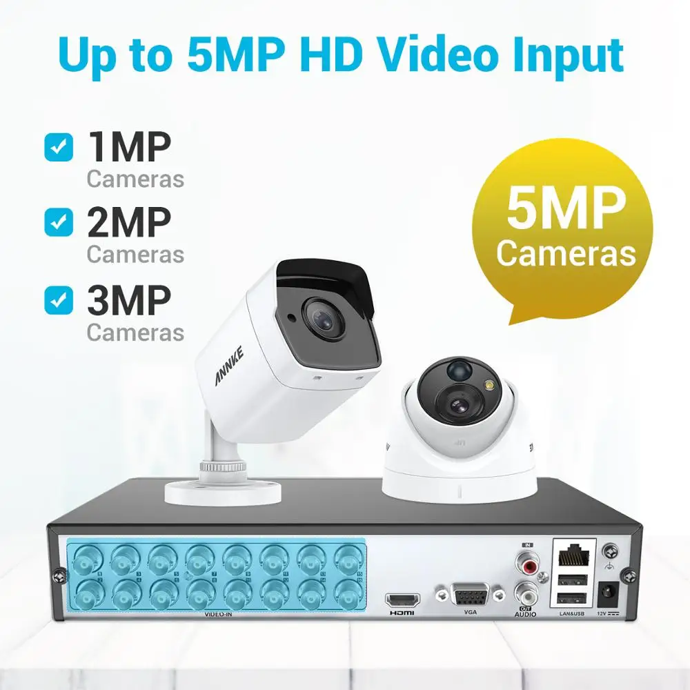 Best Quality ANNKE 16CH 5MP Ultra HD Video Security System 5IN1 H.265+ DVR With 12PCS 5MP TVI Waterproof Camera