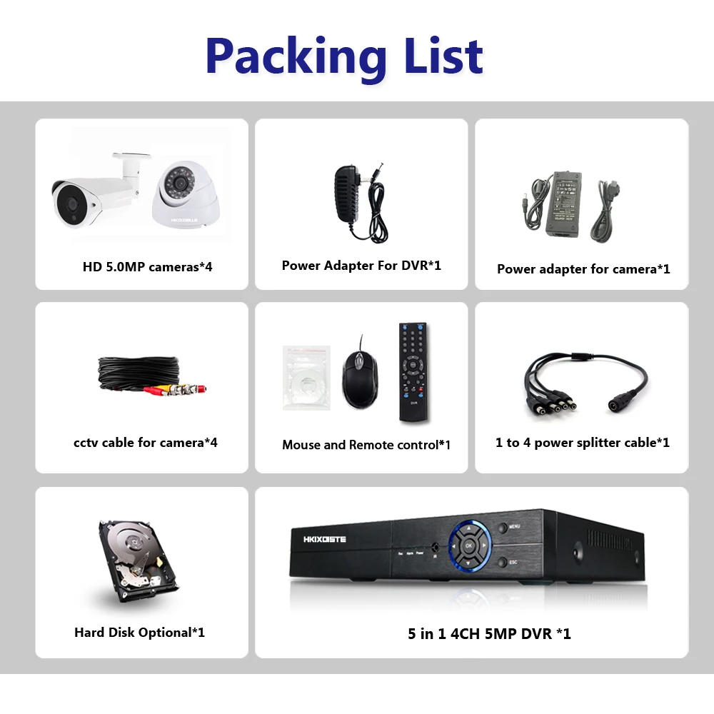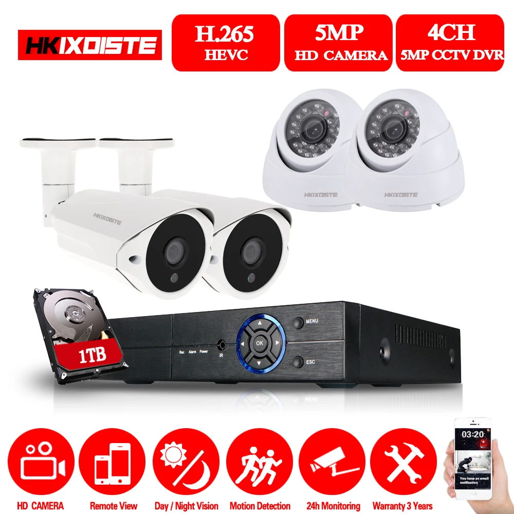 HKIXDISTE 5.0MP Security Camera System 5MP CCTV Surveillance Kit 4CH DVR 5MP Video Output Kit 40m N