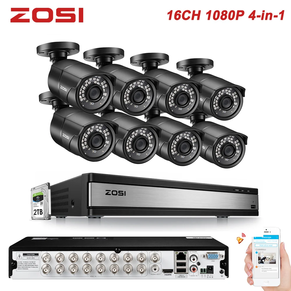 HIGH QUALITY ZOSI 1080P 2MP 4-in-1 16CH CCTV System TVI CVI AHD CVBS DVR Kit Bullet Waterproof Video IR Filter N