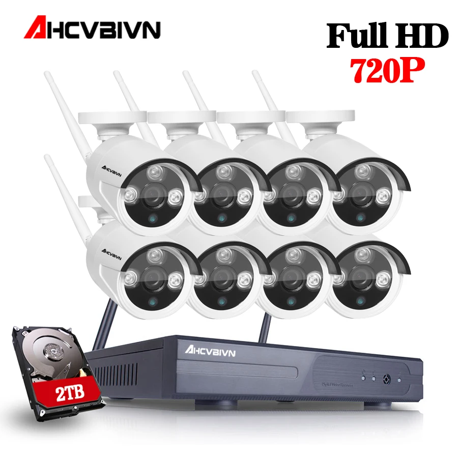 8CH 1080P NVR WIFI Surveillance Kit Plug and Play 720P HD 1.0MP Wireless Waterproof Night Vision Se