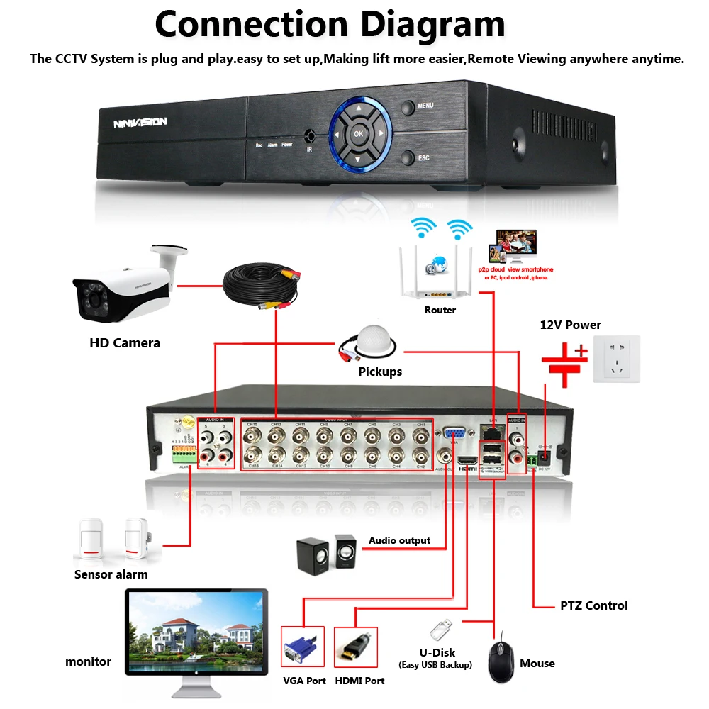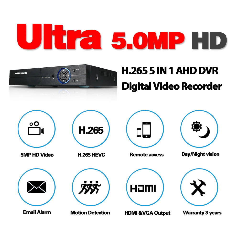 H.265+ 16 Channel AHD DVR 5MP 16CH AHD/CVI/TVI DVR 1080P 4MP 5MP CCTV Video Recorder Hybrid DVR NVR